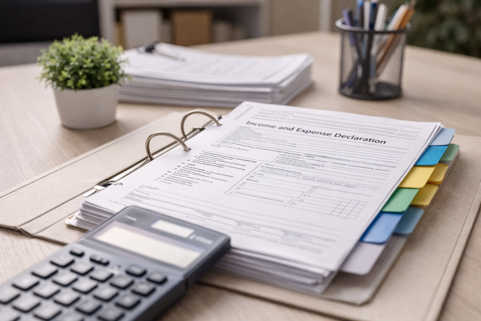 - Income and expense declarations and supporting attachments